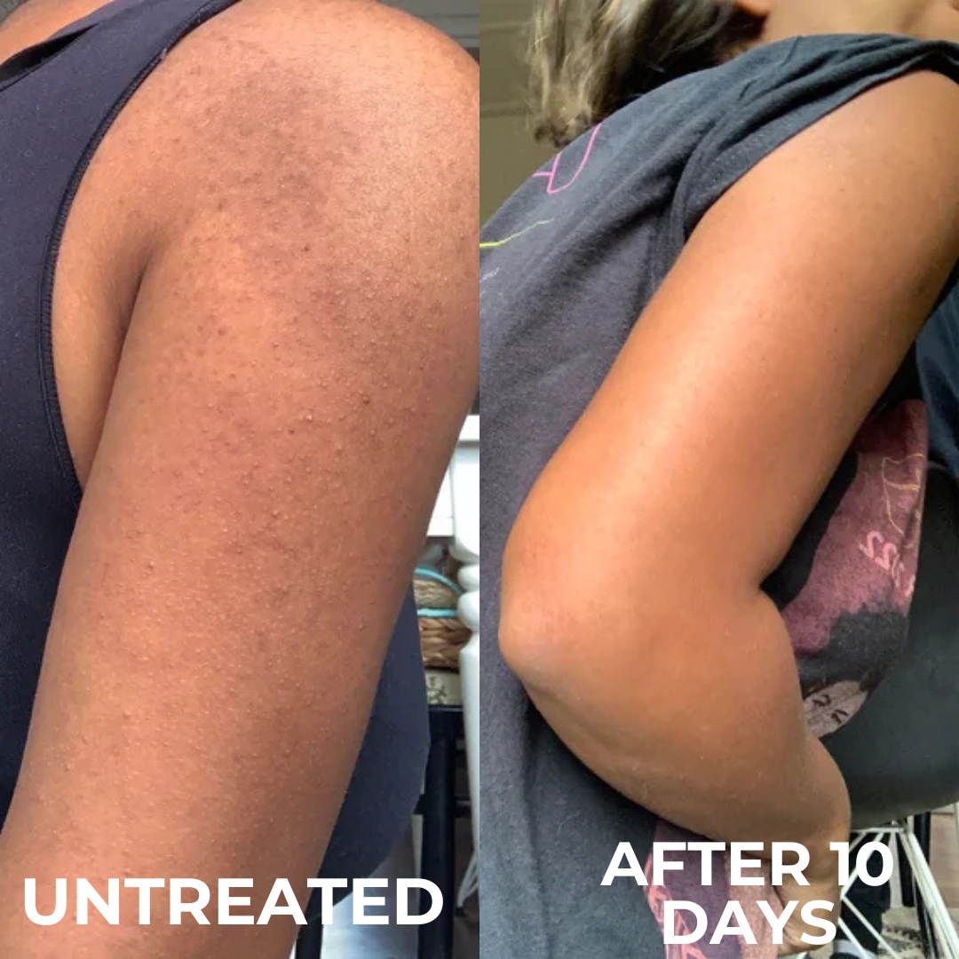 Yes. While developed for keratosis pilaris, the formula is equally effective for follicular keratosis that occurs after shaving (commonly called “strawberry legs”). The salicylic acid component helps prevent ingrown hairs, while the anti-inflammatory ingredients reduce post-shaving redness.